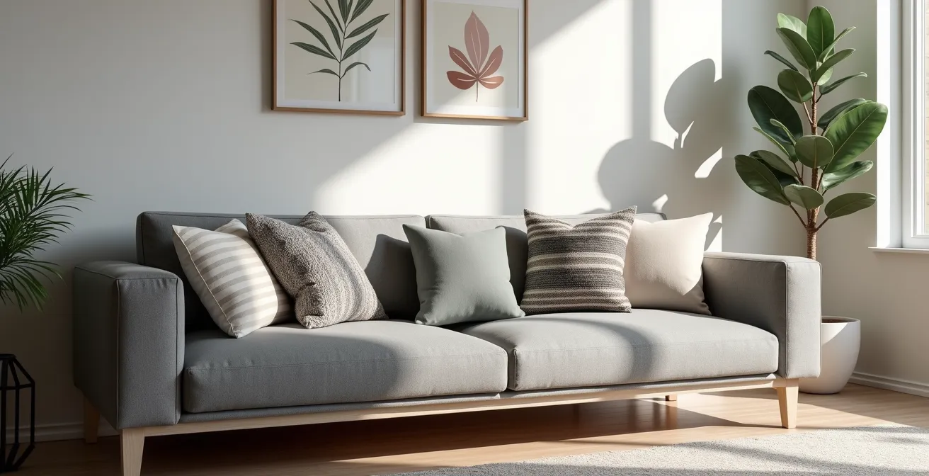 Le canapé gris est la toile de fond parfaite. Neutre, élégant, intemporel. Mais c’est aussi une page blanche qui peut paralyser. Comment y déposer des coussins à motifs sans que l’ensemble ne vire à la cacophonie visuelle ? La peur de la faute de goût, de créer un décor « clownesque » plutôt que « pointu », est une crainte légitime pour tout décorateur amateur. On pense souvent qu’il suffit de choisir des coussins dans les mêmes tons pour que la magie opère. On parcourt les magasins, on accumule des pièces qui nous plaisent individuellement, mais une fois réunies sur le canapé, l’harmonie n’est pas au rendez-vous.
