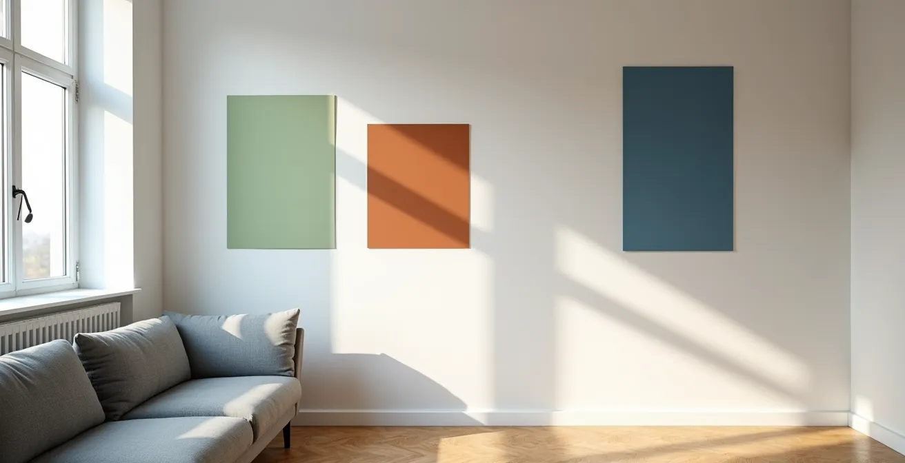 3. Vérifier les harmonies : Placer le panneau à côté des éléments fixes de votre salon qui ne changeront pas : le parquet, le canapé, un grand meuble, le plan de travail de la cuisine si elle est ouverte.