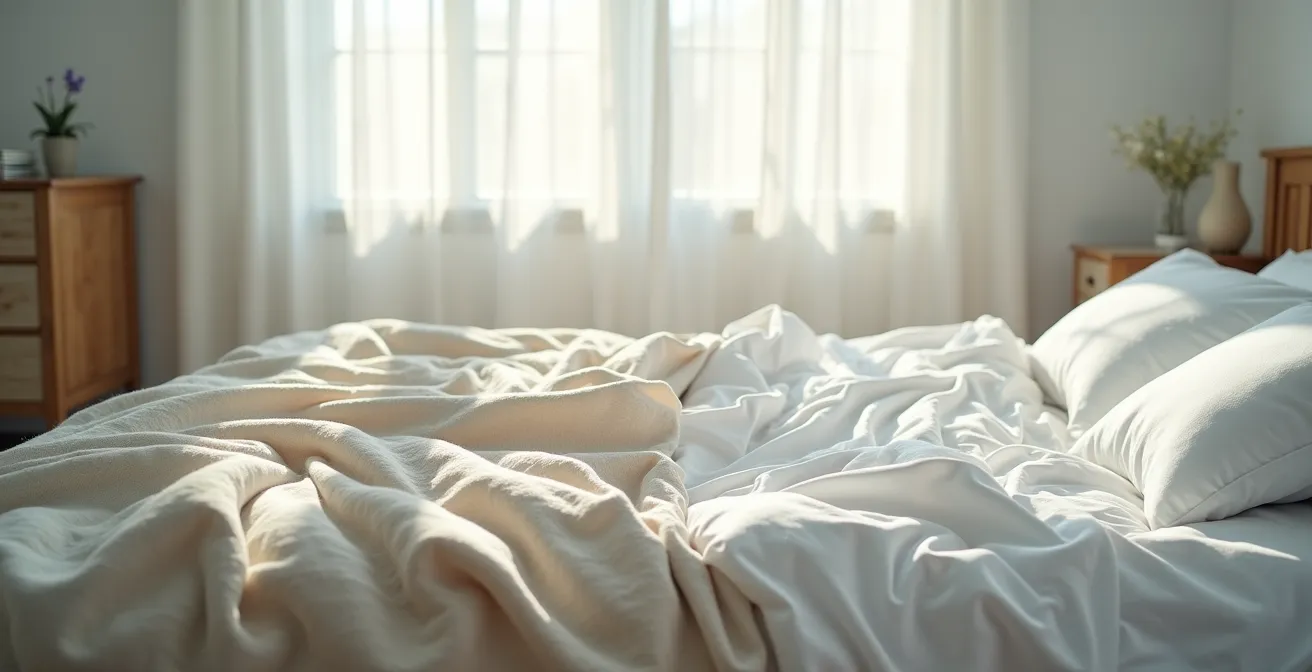 Se réveiller en pleine nuit, le corps moite et les draps humides, est une expérience désagréable qui perturbe profondément la qualité du sommeil. Beaucoup pensent que la solution réside dans des ajustements évidents : baisser le chauffage, opter pour une couette plus légère ou même revoir son alimentation du soir. Si ces éléments jouent un rôle, ils ne s’attaquent souvent qu’aux symptômes et non à la cause fondamentale du problème : l’incapacité de votre literie à gérer le microclimat de votre lit. La transpiration est un processus de thermorégulation naturel et essentiel, mais lorsque le textile en contact avec votre peau ne peut ni absorber ni évacuer efficacement cette humidité, une sensation de chaleur et d’inconfort s’installe.