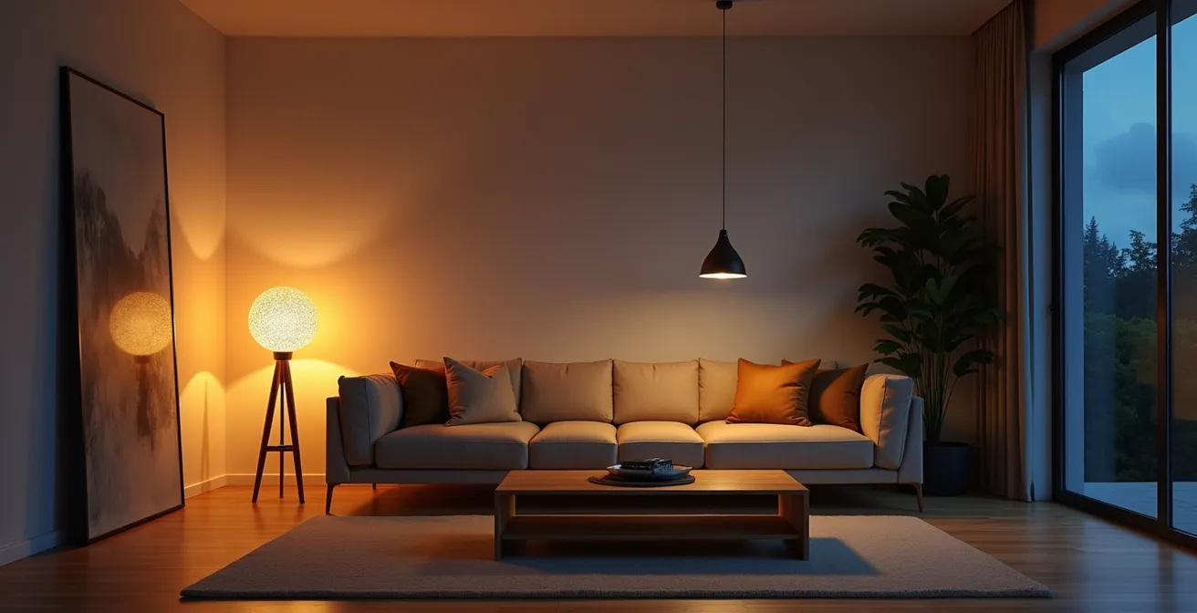 Pour protéger votre repos, la règle est simple : en soirée, la lumière de votre salon doit imiter celle du soleil couchant. Privilégiez des sources lumineuses dont la température ne dépasse pas 3000K, et idéalement, se situe autour de 2700K. Ce halo chaud et ambré est pauvre en bleu et signale à votre corps qu’il est temps de se préparer au repos. C’est le premier pas fondamental pour transformer votre salon en un véritable sanctuaire de bien-être, et non en une annexe de votre bureau.
